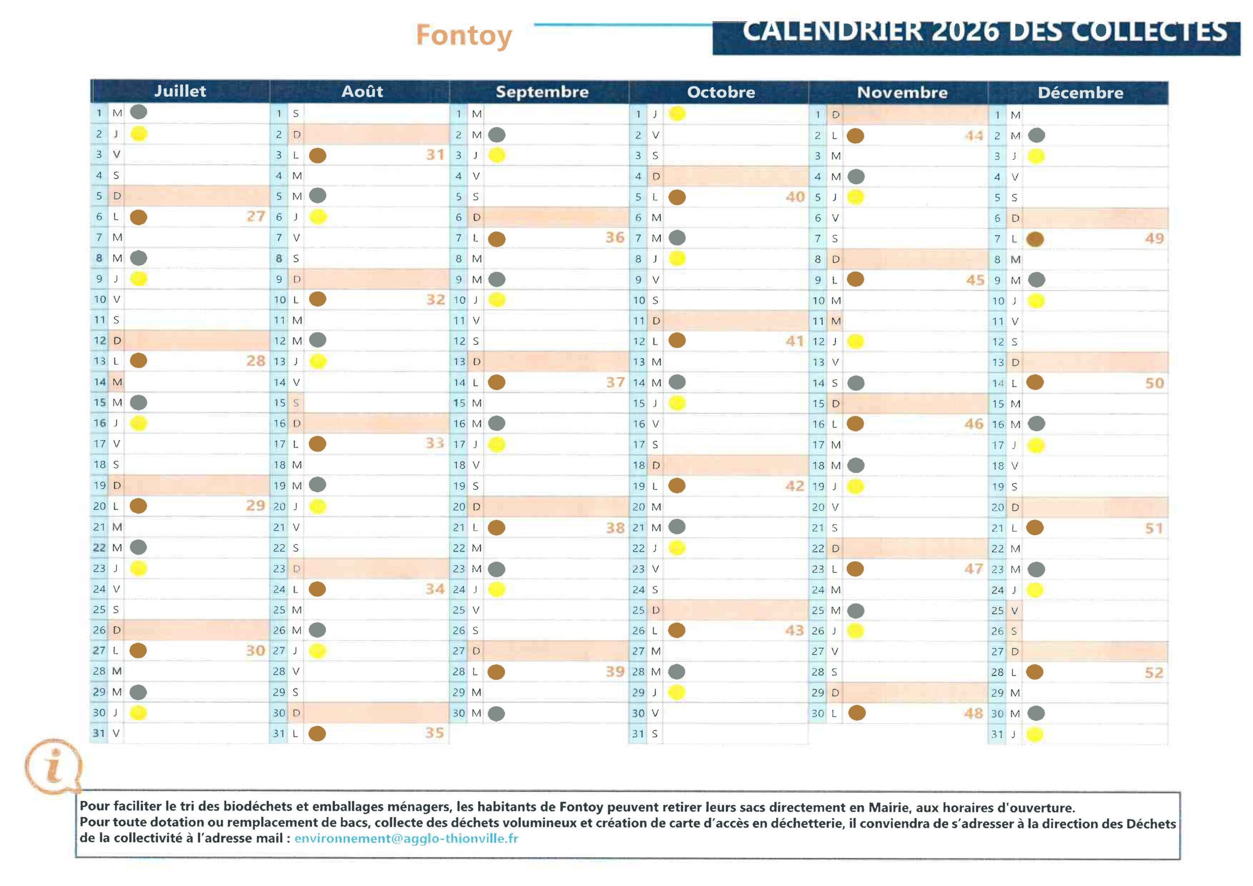 Calendrier des collectes 2026.