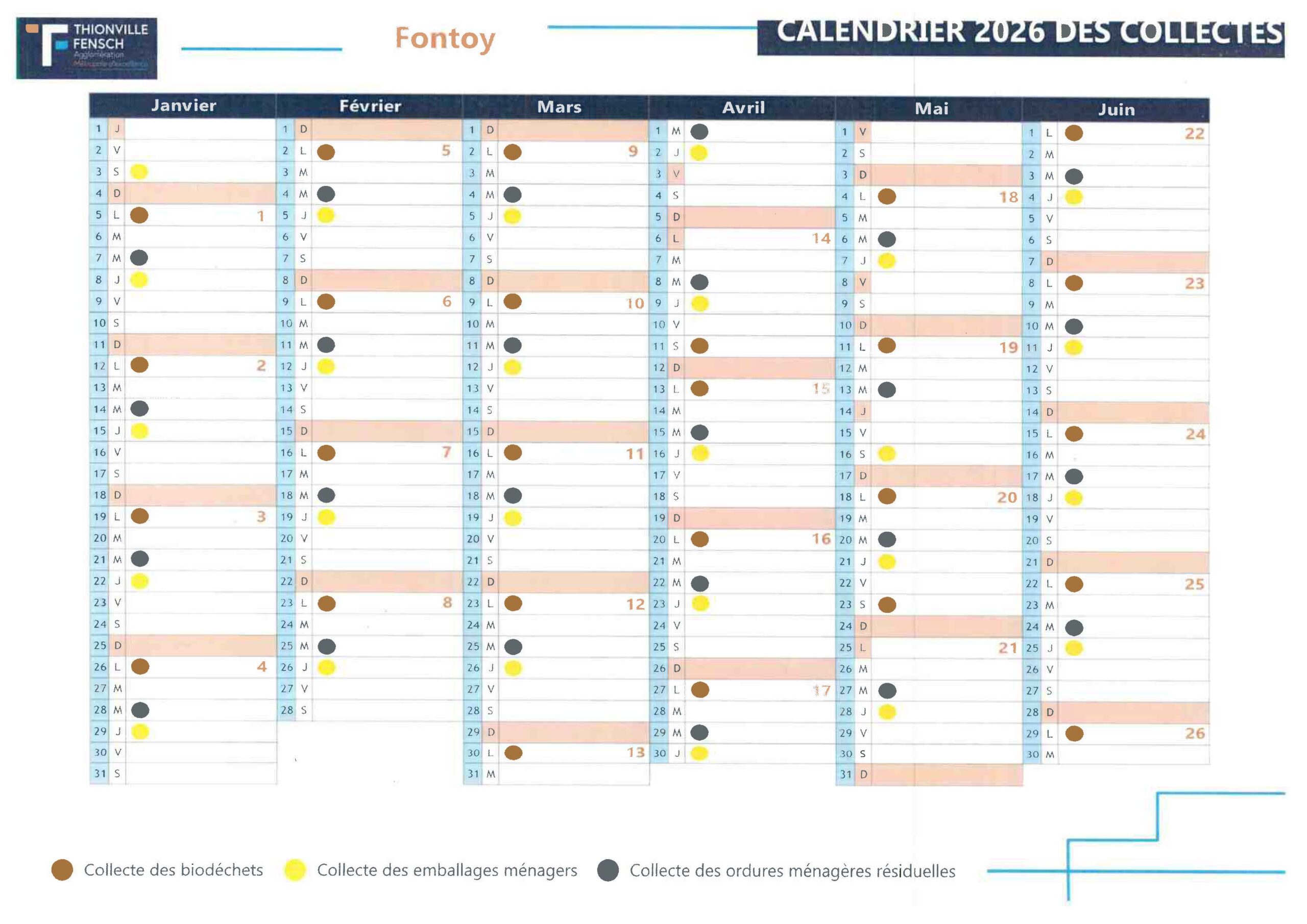 Calendrier 2026 des collectes